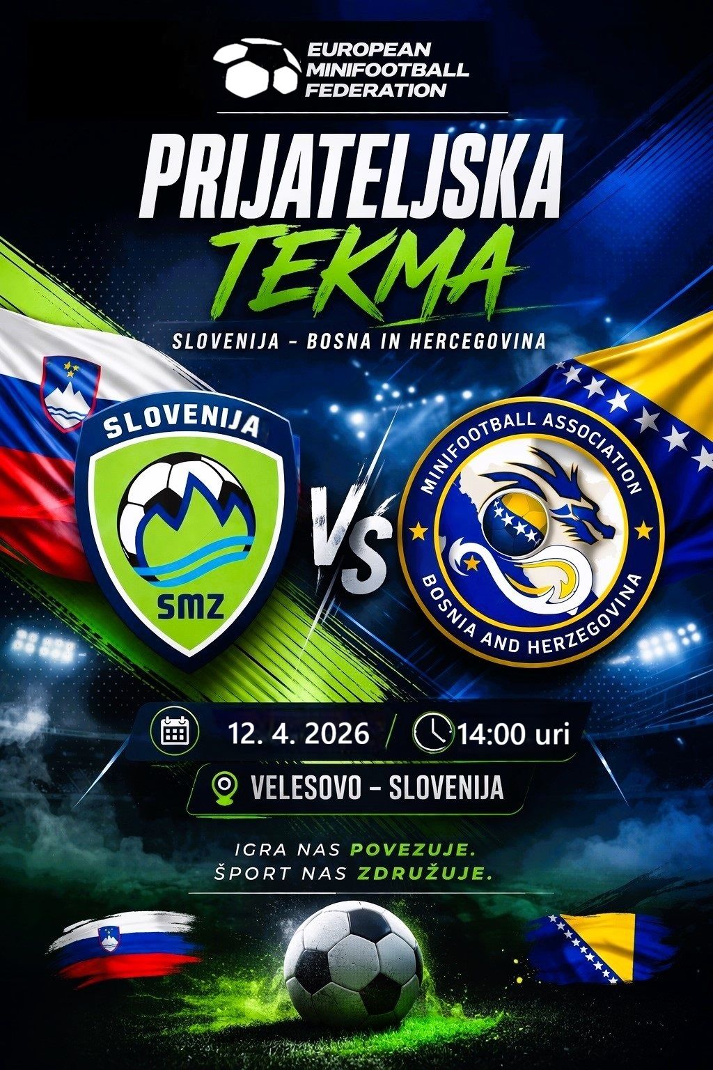 V sklopu priprav na prihajajoče evropsko prvenstvo EURO EMF 2026, ki bo potekalo na Slovaškem, bo reprezentanca Slovenije odigrala pripravljalno tekmo proti reprezentanci Bosne in Hercegovine, ki bo prav tako nastopila na prvenstvu.